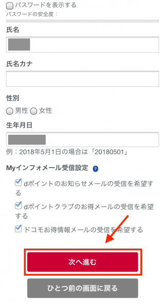 全て入力を終えたら、「次へ進む」をタップしててください。