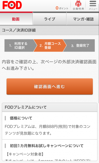 【FOD登録手順③】支払い方法の選択