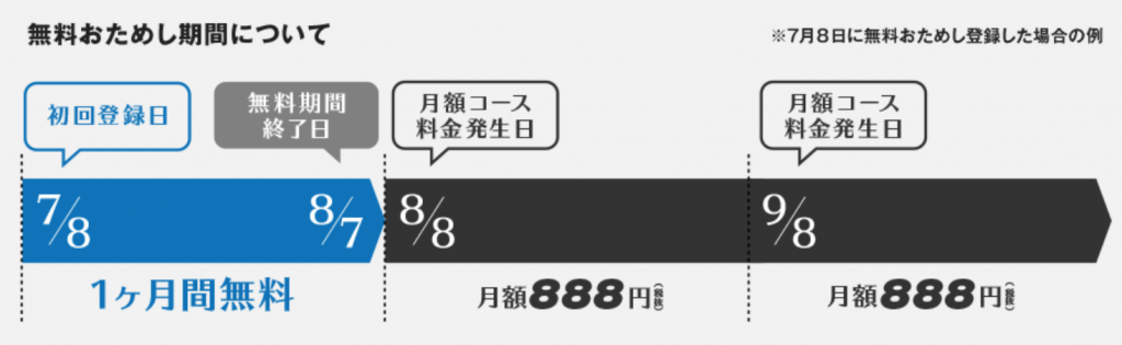 無料期間終了後の翌日より月額コース料金が発生します。