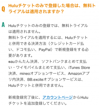 しかし、Huluチケットを利用する場合は、無料トライアルを利用することができません。