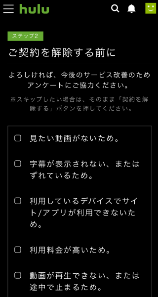 【Hulu解約手順④】アンケートに回答