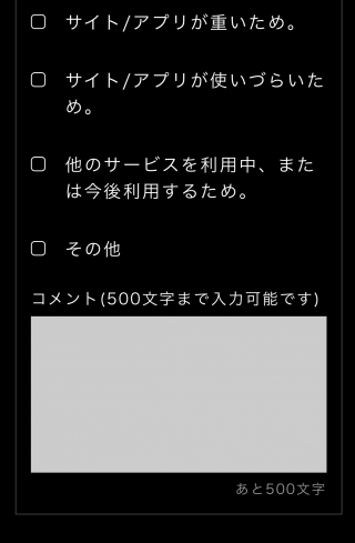 「契約を解除する」をタップ後、「ご契約を解除する前に」という題目で各アンケートの回答画面に切り替わります。