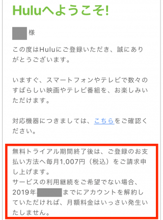 登録した際にHuluから下記メールが届きますので、そちらに期限が記載されています。