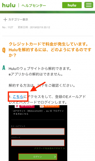 質問をタップすると下記画面に切り替わるため、「こちら」を記載されているリンク先へ進んでください。