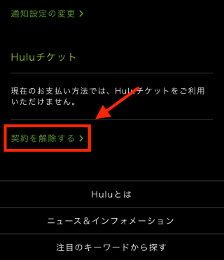 また、Huluはスマートフォンからの解約が簡単なため、以下、スマートフォンの画像を使用しています