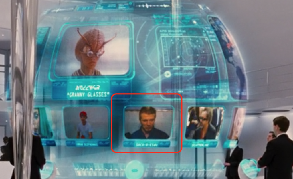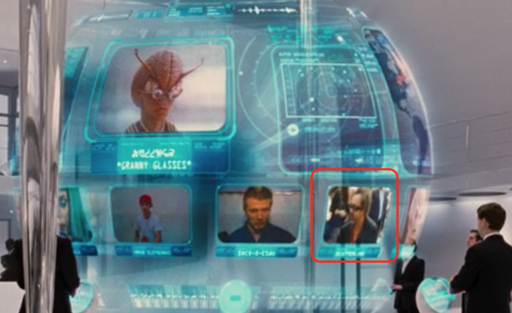 2つ目のシーンは、ボリスが過去のKを殺した翌日、MIB全員がKの存在を認識してらず、Jが戸惑いながらオフィスに入った後のディスプレイです。