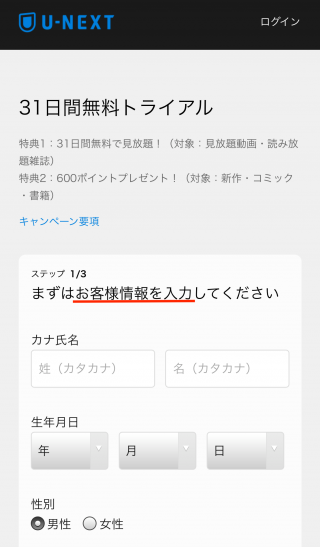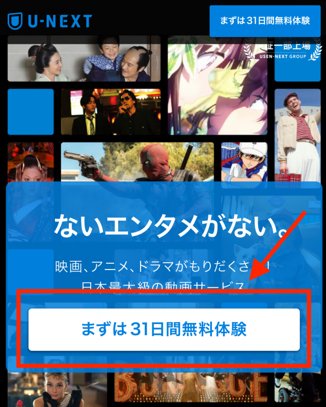 また、U-NEXTはスマートフォンからの登録が簡単なため、以下、スマートフォンの画像を使用しています。