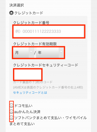クレジットカードを持っていない人、あるいは、クレジットカード以外での支払いを希望する人は、「キャリア決済」を選択しましょう。